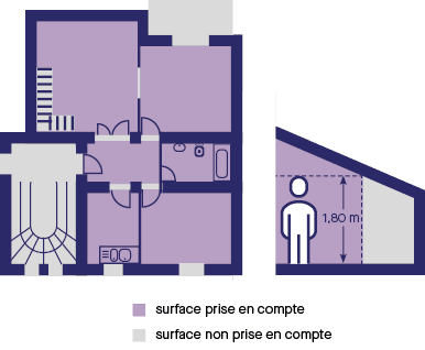 - les conduits de cheminée et les gaines sont inclus, même si l’espace est bas de plafond,